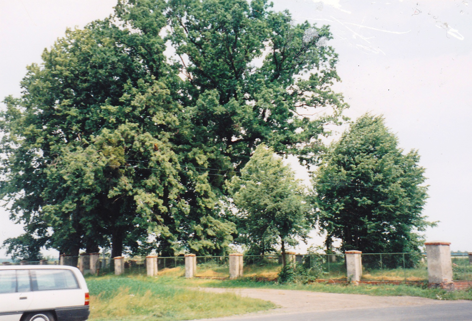 Drei Reihen an der großen Eiche vom Ostzaun gesehen