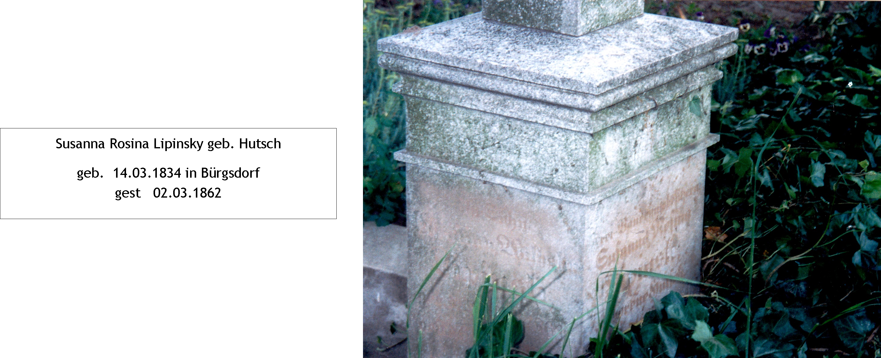 - Steinplatte: Frau Rosina Lipinska geb. Kabitz + 14.08.1818