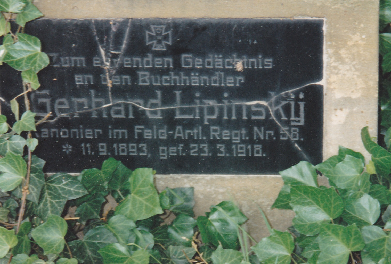 - Stehende Marmortafel: Georg Lipinsky Erbscholtiseibesitzer geb. 19.Dez. 1883 + 8. April 1932